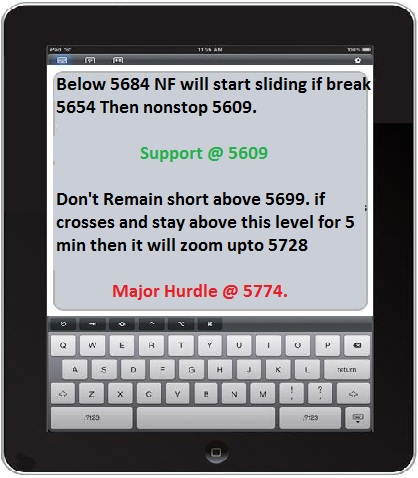 Hope every one enjoyed down side from 5760 as it was mention to sell NF around 5774. NF made low @ 5661 and close @ 5672.30