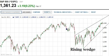 Above S&P500 Chart showing Rising wedge patten , But still it can rise upto 1390 before it touches upper trend line .