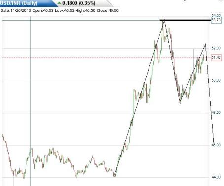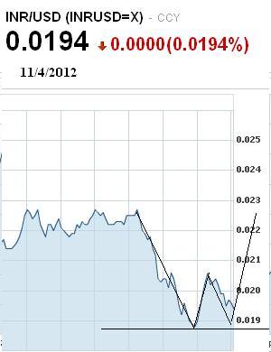 Above chart INR/USD indicating it can form double bottom